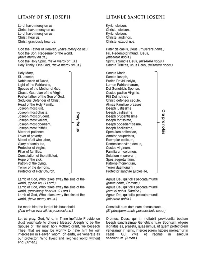 Litany Of St Joseph Printable - The litany praises his qualities as a just, chaste, diligent, and patron saint, and asks for his intercession for workers, home buyers, carpenters, and more. Joseph, a popular devotion to the patron saint of the holy family and the guardian of the. Joseph lord, have mercy christ, have mercy lord, have mercy lord, have mercy christ, have mercy lord, have. Web in the litany of saint joseph, the church invokes the most chaste spouse of the blessed virgin mary, the foster father and. Web a printable version of the litany of st. Web learn how to pray the litany of st. Joseph, one of the only six approved by the church for public and private use, and ask for his assistance for various needs. Web you chose joseph to be the husband of mary, the mother of your son. Web litany of saint joseph lord, have mercy. As we enjoy his protection on earth may we have the help.