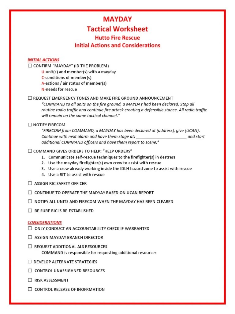 Mayday Tactical Worksheet PDF Firefighter Fires
